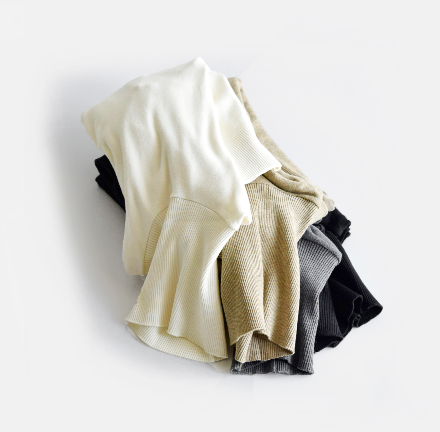 真冬でも室内の暖房でほてりやすい私は、ウールのタートルネックでのおでかけが不安な時も…。なのでタートルネックのレイヤードスタイルには、コットンニットを選ぶようにしています。去年、白と黒、それぞれサイズ違いで購入し大活躍でした。長めのリブなど、一枚で着ても肌着のようにならないディティールも気に入ってます。